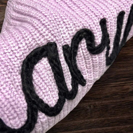 Oversized Double Name Embroidered Thick Knit Sweaters