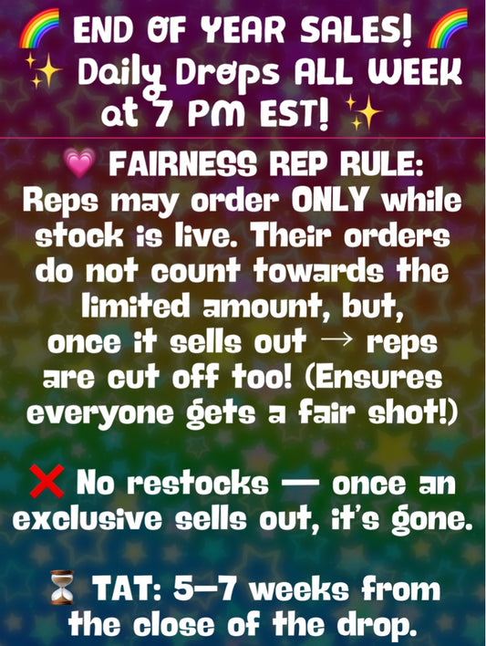 **SHIPPING WILL BE INVOICED AT THE END OF THE EOYS! You MUST pay the shipping invoice once it is sent! this will make sure nobody is overcharged, and no confusion during the sales takes place. This has worked great in the past!** Shipping is $4.5 for 1, $8.5 for 2 or more, add $1.5 for orders over $100. Once the deals are over you'll be charged ONCE only as if you only placed one order.