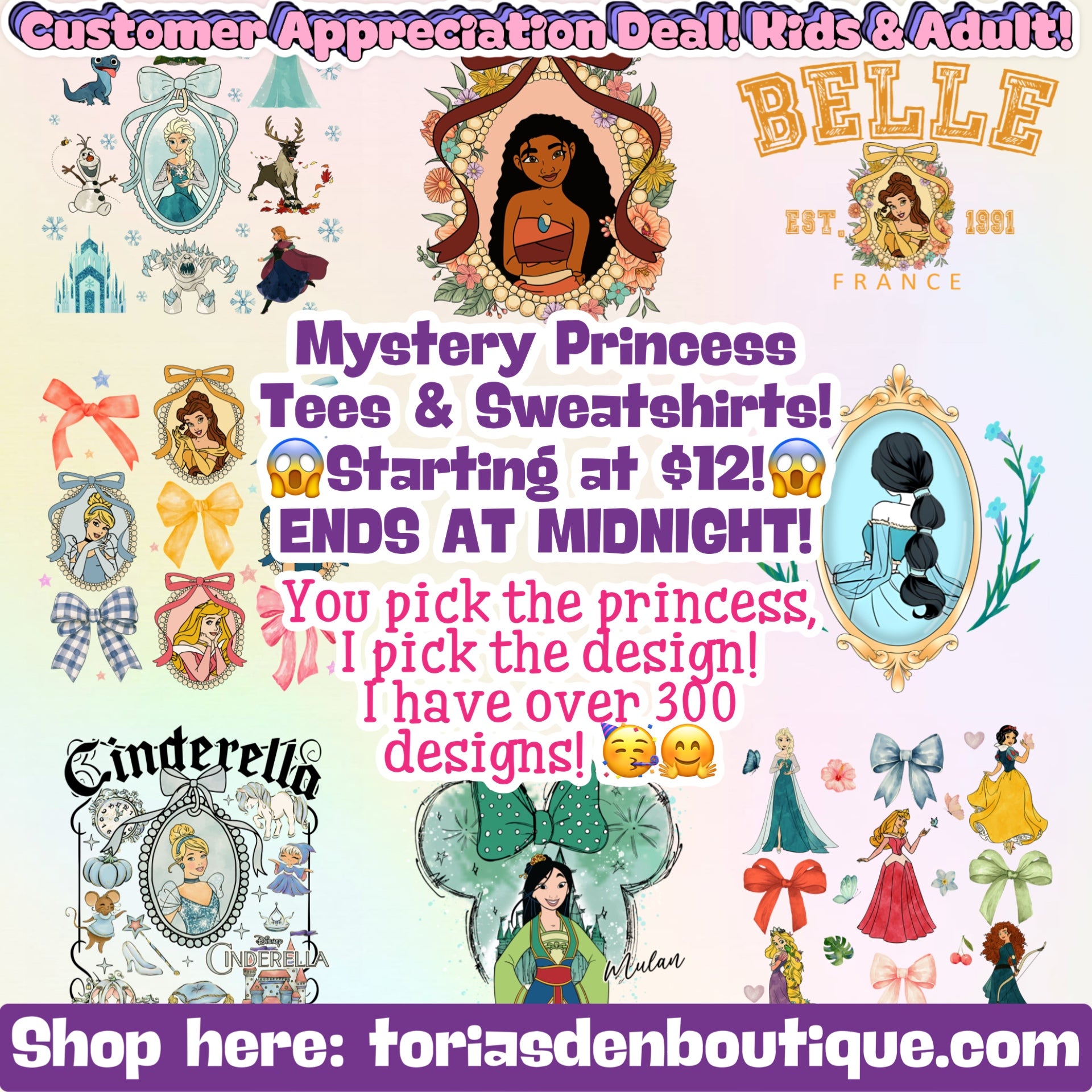 Mystery Princess Tees/Sweatshirts (You Pick the Princess!) Customer Appreciation Deal! Ends at 8 PM EST!